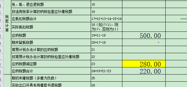 本期产生500的应纳税额,那么280可以全部抵减完。