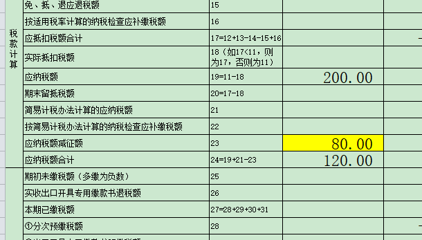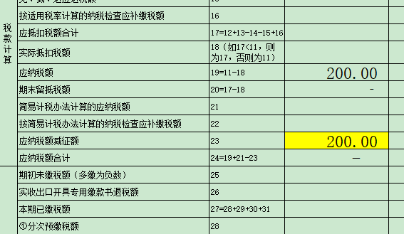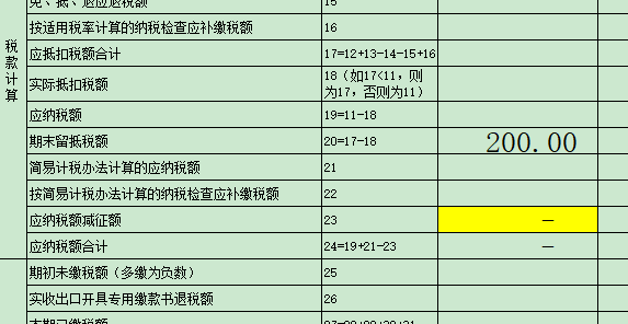 本期产生200的应纳税额,那么280不能全部抵减完。剩下的部分只能留到下次继续抵减。那么申报表填写如下: