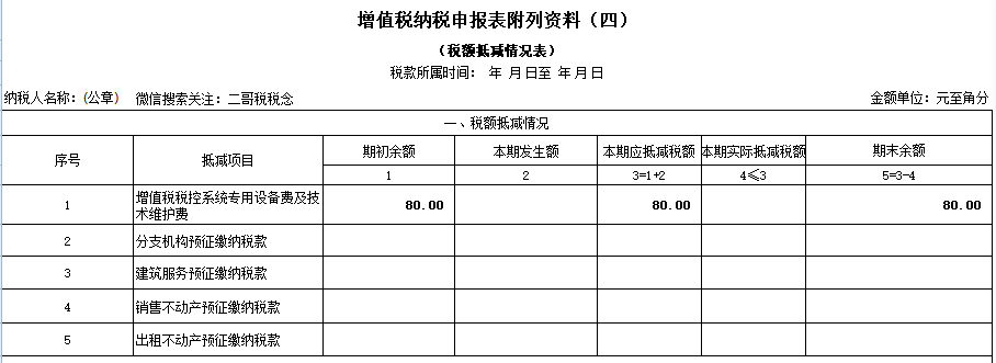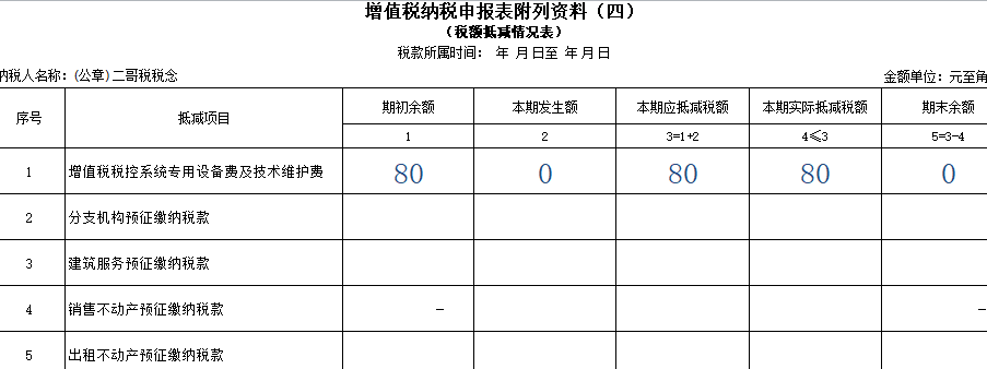 2、《增值税纳税申报表附列资料4》税额抵减情况表。