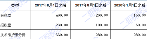 2020年1月1日起,降低增值税税控系统专用设备价格:金税盘零售价格由每个200元降为160元; 报税盘零售价格由每个100元降为60元;技术维护费280元/套/年维持不变,对使用两套及以上增值税税控系统的,从第二套起减半收取技术维护服务费用;税控设备费用和服务费全额抵减政策维持不变。