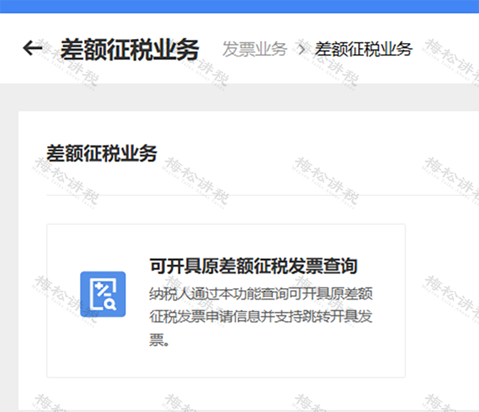 (2)会出现可开具原差额征税发票查询:纳税人通过本功能查询可开具原差额征税发票申请信息并支持跳转开具发票。