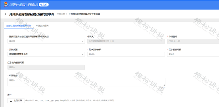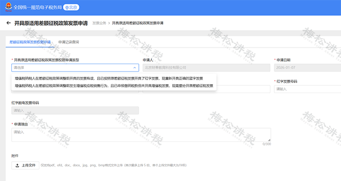 二、开具原适用差额征税政策发票申请