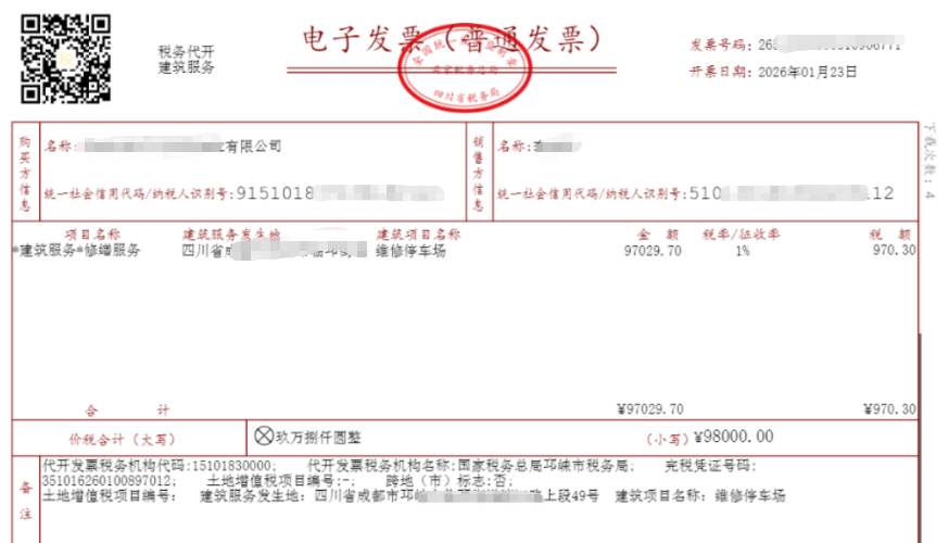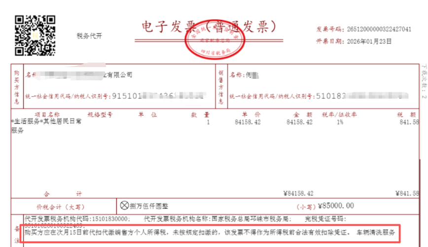 一张是修理停车场的建筑服务发票,另一张是汽车清洗的生活服务发票,我正愁要不要代扣个税呢?