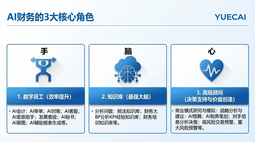 总的来看,AI财务扮演3方面的角色: