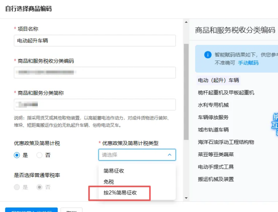 先去项目信息维护中维护,“优惠政策及简易计税”选择“是”,“优惠政策及简易计税类型”选择“按2%简易征收”。然后再去开票的时候即可开具征收率为2%的发票了。