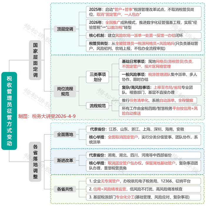 广东示范后,近两年国家及各省持续推进税收管理员征管方式改革,核心节点进度如下: