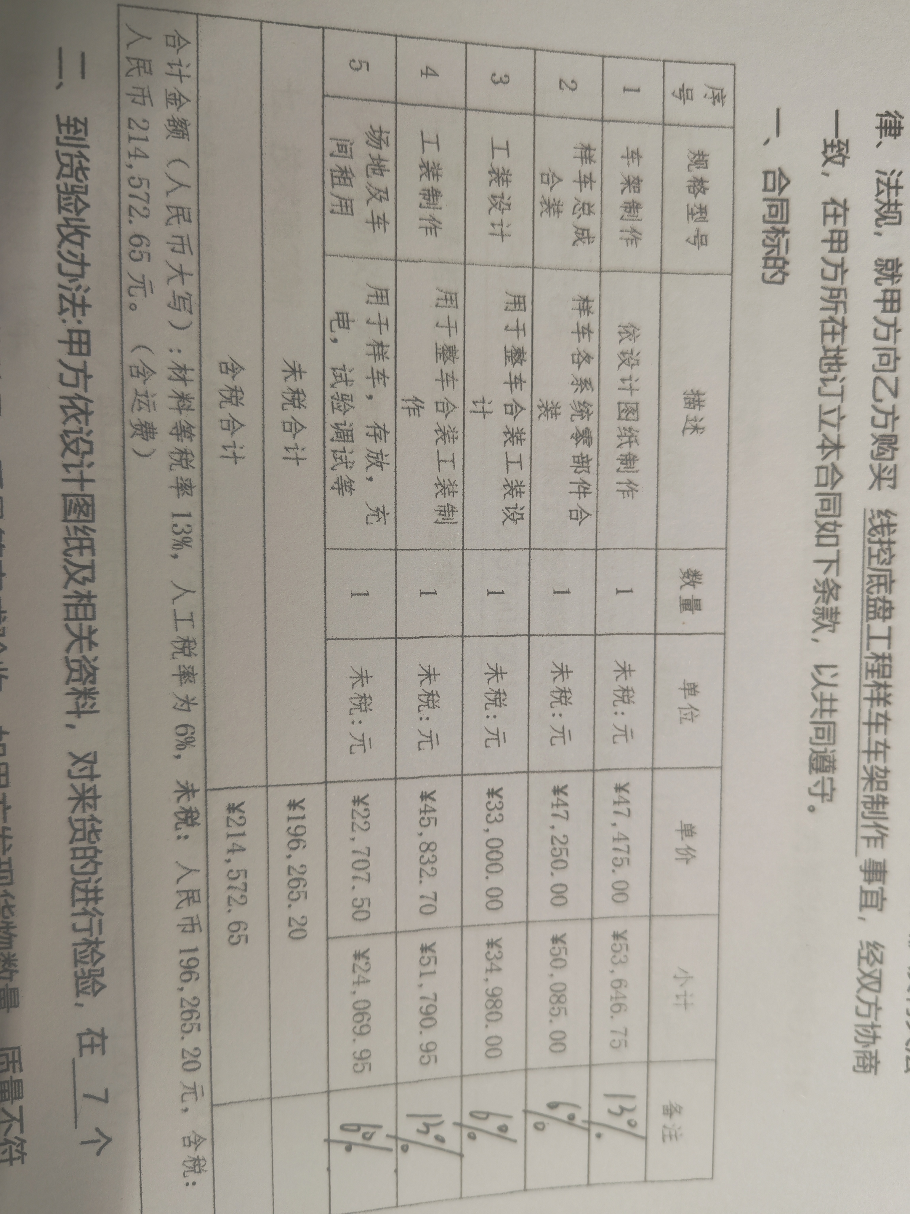 老师现在第二个样车总成合装按照6%计算了,场地及车间租用按照6%计算,合同不能改这个我可以往哪个大类上靠