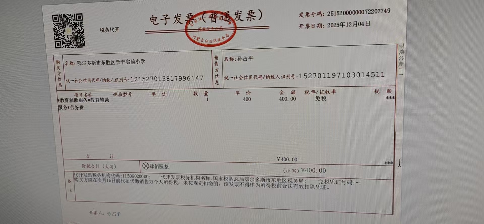个人提供服务,单次不超过500,未达到增值税起征点,代开时税率栏开具“免税”字样。