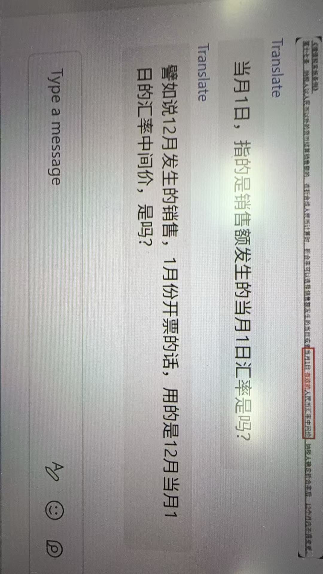 您理解是正确的,1月开票,但该业务是12月的业务,所以应该是业务发生的当月一日的汇率,也就是12月1日的汇率。