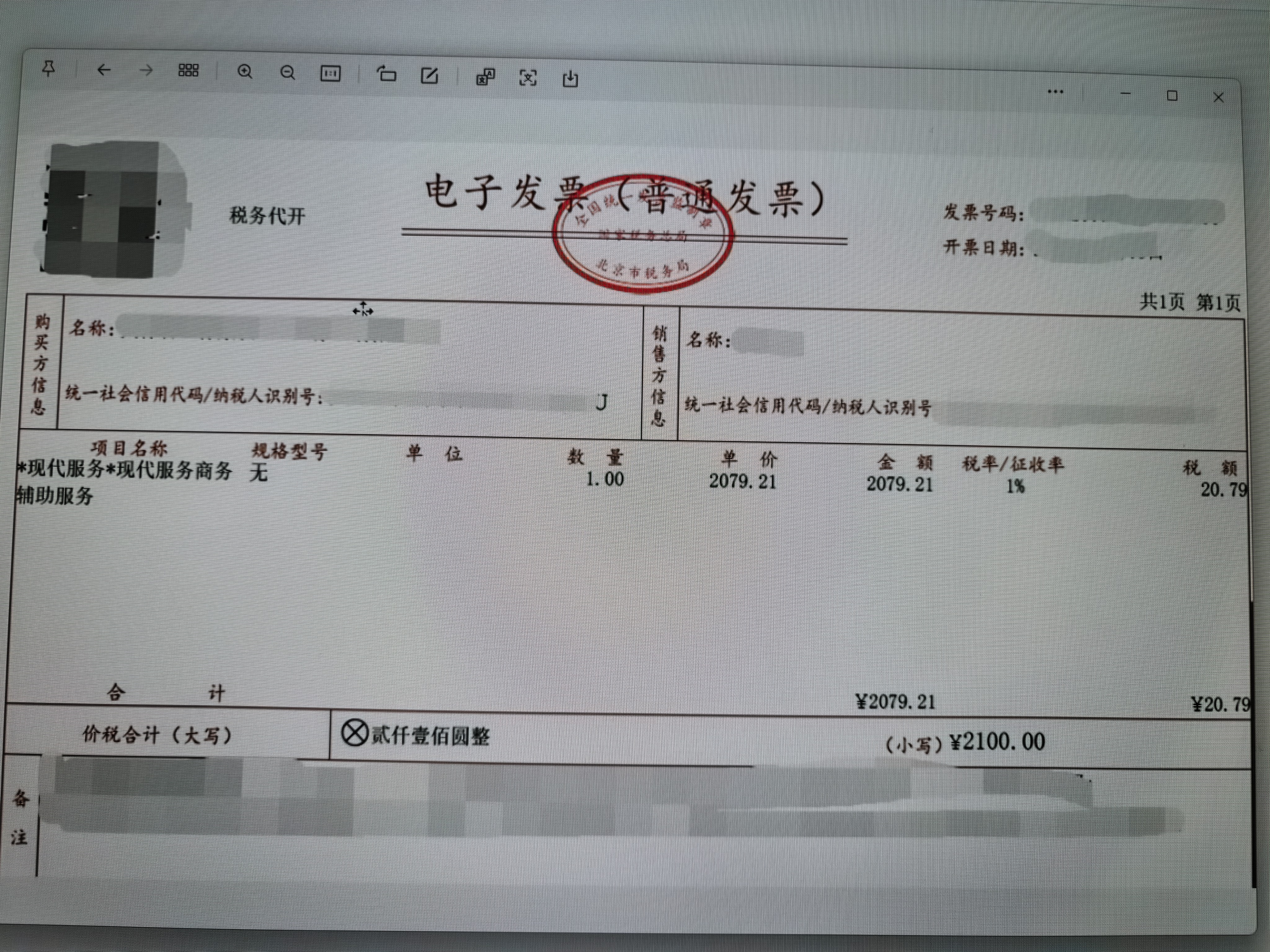 计算劳务报酬所得,基数使用“不含税金额”,即“2079.21元”。