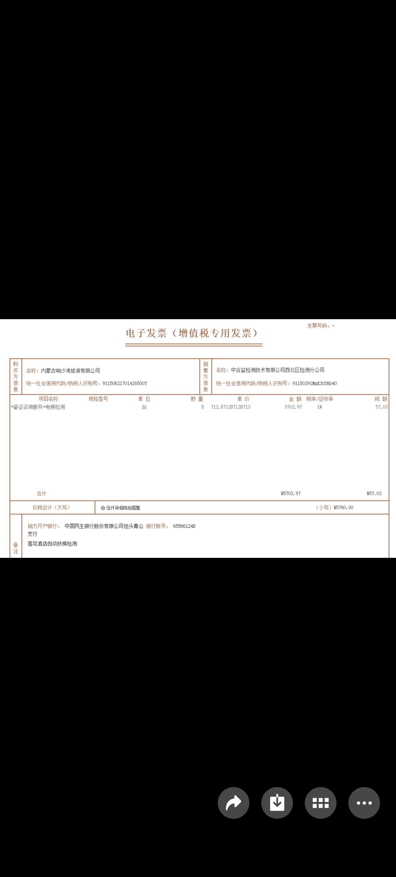 你的这张发票型号后边不就写了电梯检测了吗?它的大类就是鉴证服务,所以星号后边也注明了电梯检测,就完全合规了,不需要在备注栏里面填写什么内容。