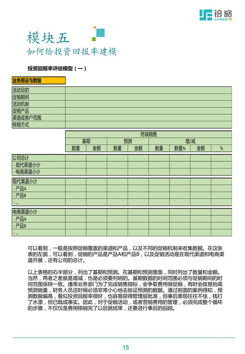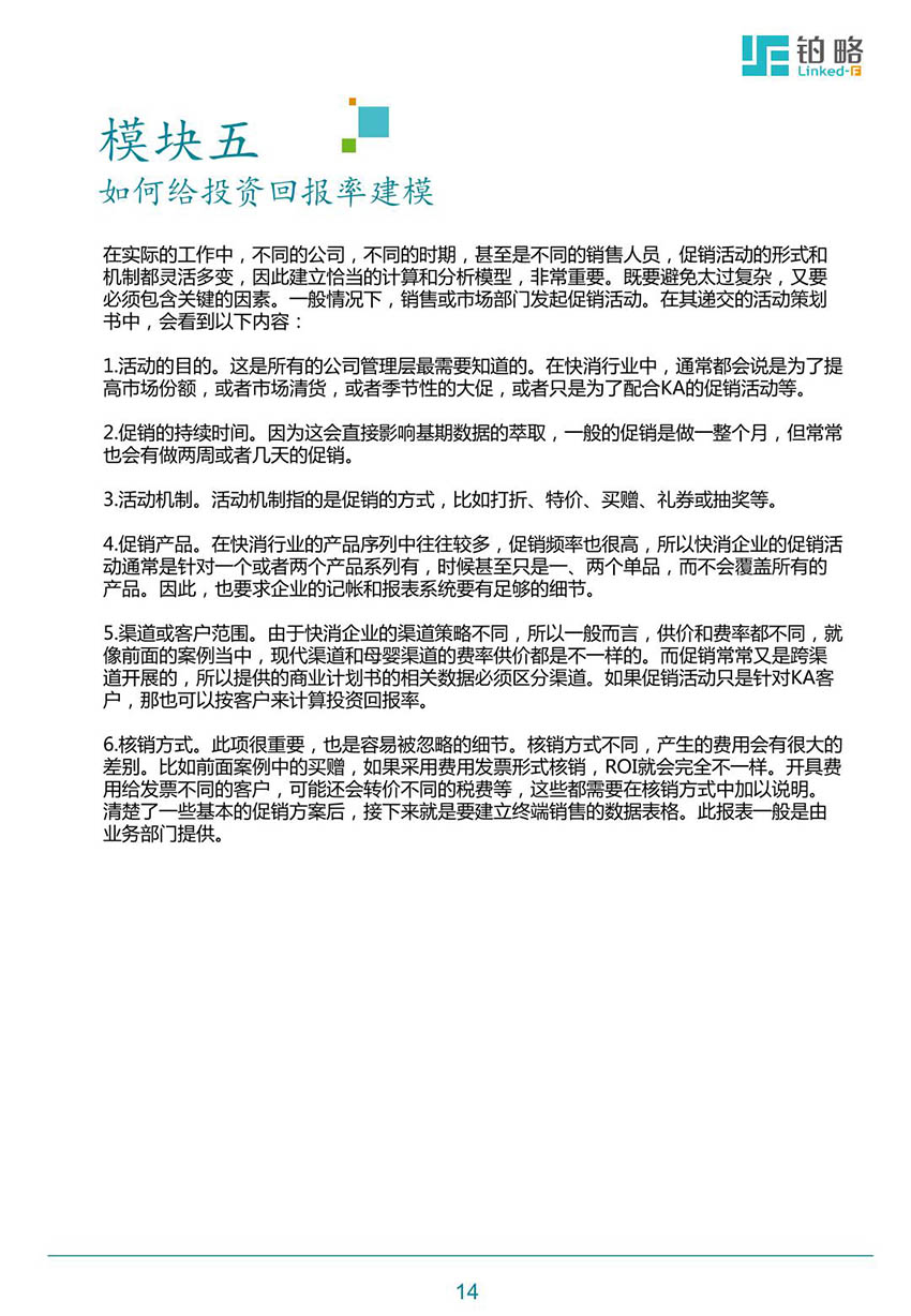本报告讲解:浅析“费销比”的弊端;“ROI”的使用方法及计算逻辑;促销活动事后评估的必要性与益处;如何给投资回报率建模。